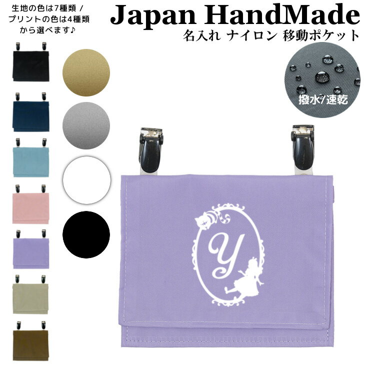 移動ポケット ( ナイロン / クリップ 着脱 / イニシャル 不思議の国の アリス チシャネコ )| ノーアイロン 女の子 男の子 撥水 大きめ かわいい おしゃれ マスクポーチ マスク入れ マスクケース 小学校 入学準備 入園準備