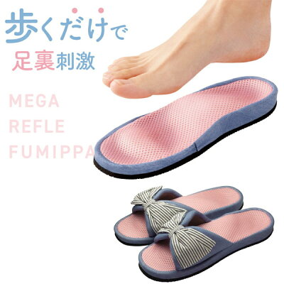 ・硬めのインソールでグイグイ刺激 ・大人可愛いボーダーリボン ・キュートなデザイン ・ムレにくいメッシュ素材 [こんな方に] ●足裏のコリ・血行をよくする ●歩き続けたり、立ち続けた方に ●翌日にダルさを持ち越したくない方に 【商品の仕様】 ●適応サイズ/23.0〜25.0cm●重さ/165g●材質/甲部分:レーヨン、ポリエステル、その他 リボン:綿100% 底材:ポリエチレン●原産国/中国製 ●メーカー/アルファックス --------------------------------------------------------- ツボ押し 足つぼ 足ツボ 足裏 サンダル レディース 室内 健康サンダル 健康スリッパ マッサージ 足つぼマッサージ グッズ インソール 指圧 グッズ健康サンダル 健康スリッパ メガリフレ ふみっぱ青竹踏みのように痛気持ちいい刺激で足裏をリフレッシュ。