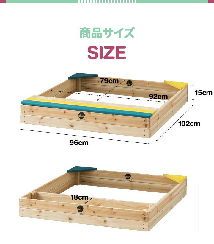 [こんな商品をお探しの方に] 砂場セット 砂場 フタ 付き 猫除け 雨除け カバー付 砂遊び 砂あそび 砂あそび すな場 すな場遊び すな場あそび すなば 外遊び 知育玩具 知育遊具 遊具 DIY 砂場キット 木 木製 木製砂場 ウッド サンドボックス 自宅用 家庭用 庭 ベランダ バルコニー 赤ちゃん ベビー 幼児 園児 キッズ 子供 子ども こども 子供用 子ども用 こども用 女の子 男の子 女 男 孫 1歳 2歳 3歳 4歳 5歳 6歳 1才 2才 3才 4才 5才 6才 一歳 二歳 三歳 四歳 五歳 六歳 一才 二才 三才 四才 五才 六才 プレゼント ギフト 贈り物 贈答品 お年玉 こどもの日 子供の日 入園 入園祝い 入学祝い 新入学 新入生 誕生日 誕生日祝い 誕生祝い 誕生日プレゼント お誕生日 プレゼント ギフト 贈り物 内祝い 内祝 クリスマス クリスマスプレゼント 節句 かわいい 人気 可愛い オススメ おすすめ Plum プラム社 英国 U.K イギリス商品詳細 ブランド: plum(プラム) サイズ: (約)幅102cm×奥行96cm×高さ15cm 重量: (約)6.5kg 耐荷重: (約)50kg 対象年齢: 1歳半以上 材質: 木 付属品: カバー、不織布 組み立て目安: (約)45分 必要な砂の量: 半分:(約)70kg / 満杯:(約)150kg ※こちらは目安です。