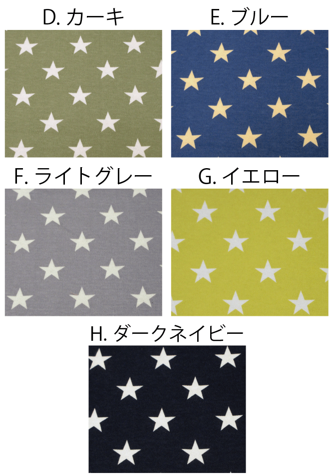 配送方法対応サイズ メール便個数1〜10 宅配便1個〜コットン100%のスムースニット生地 シンプルな星柄にかわいい5色のカラー☆