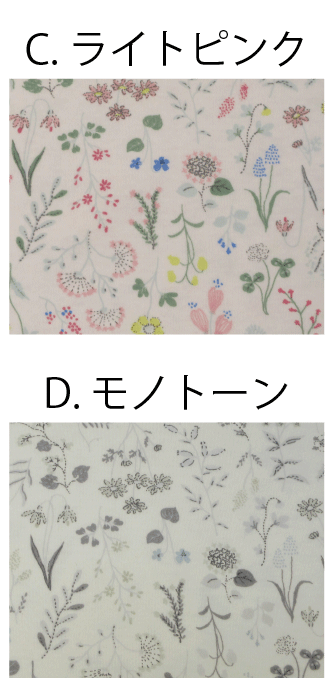 C.ライトピンク…#14 D.モノトーン…白 〇カラーについて生地を加工の際、製造時期(ロット)により、生地の色合いが多少変わる場合がございます。